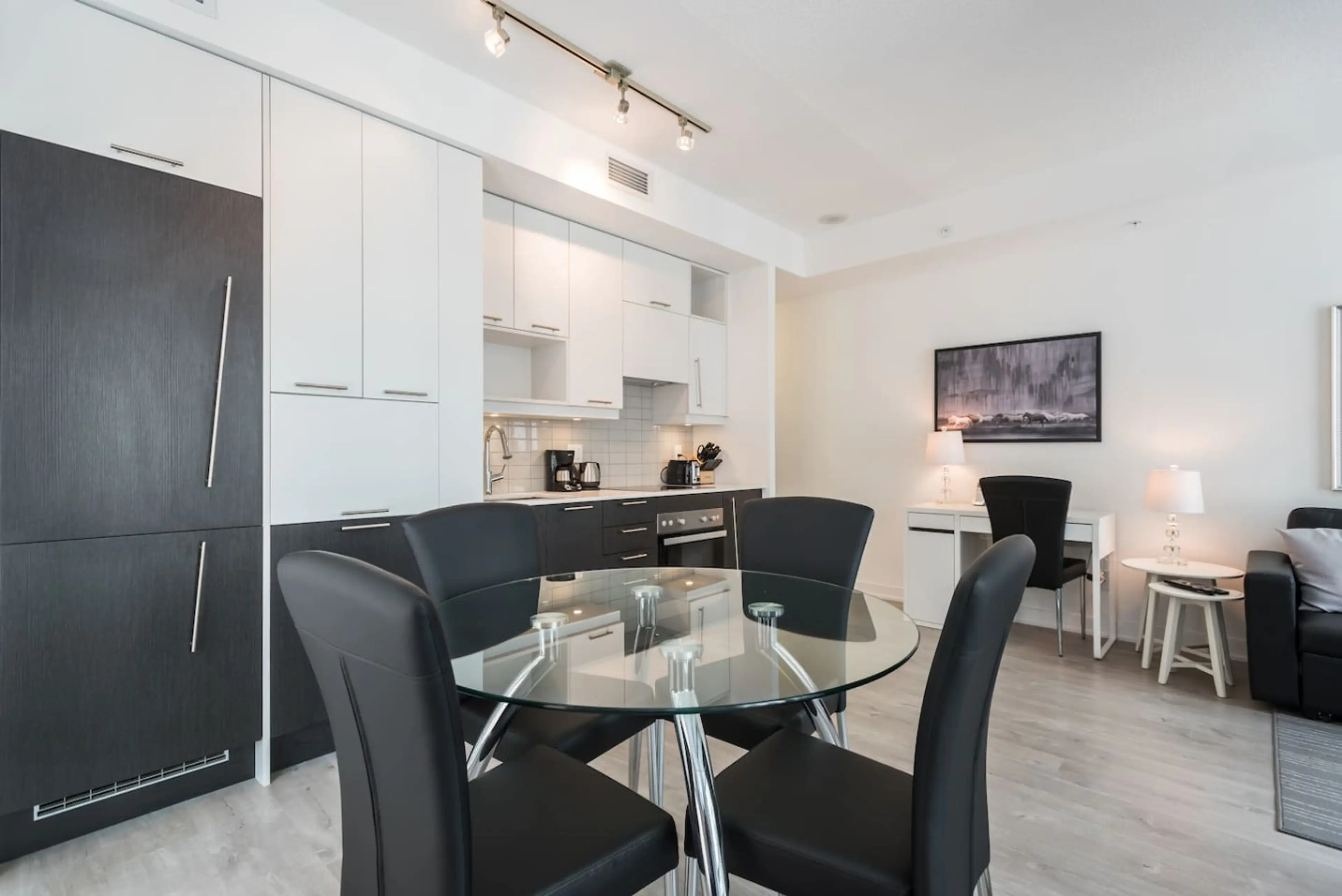 This executive 1BR at Richmond & Simcoe is ideal for business, medical and long-term stays. Steps to the Financial District, major hospitals, TIFF and the Entertainment District, it offers endless dining and entertainment options. Enjoy a fully equipped modern kitchen, in-suite laundry, fast Wi-Fi, ...
