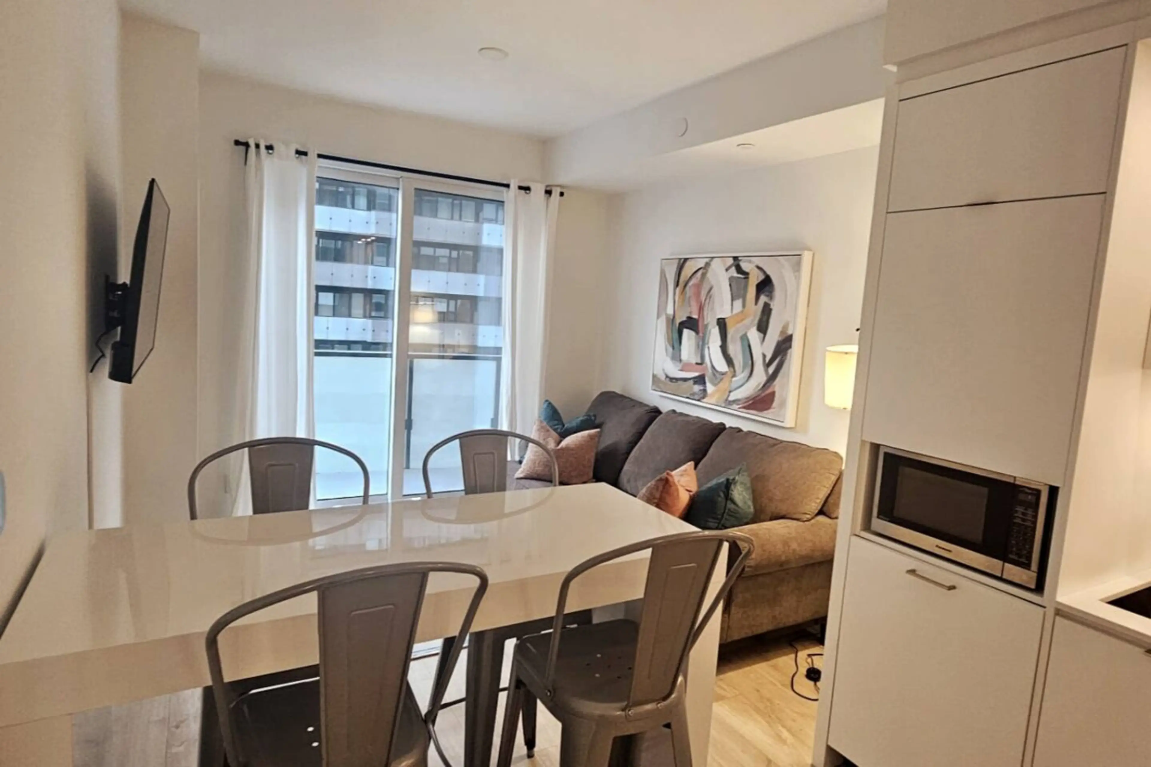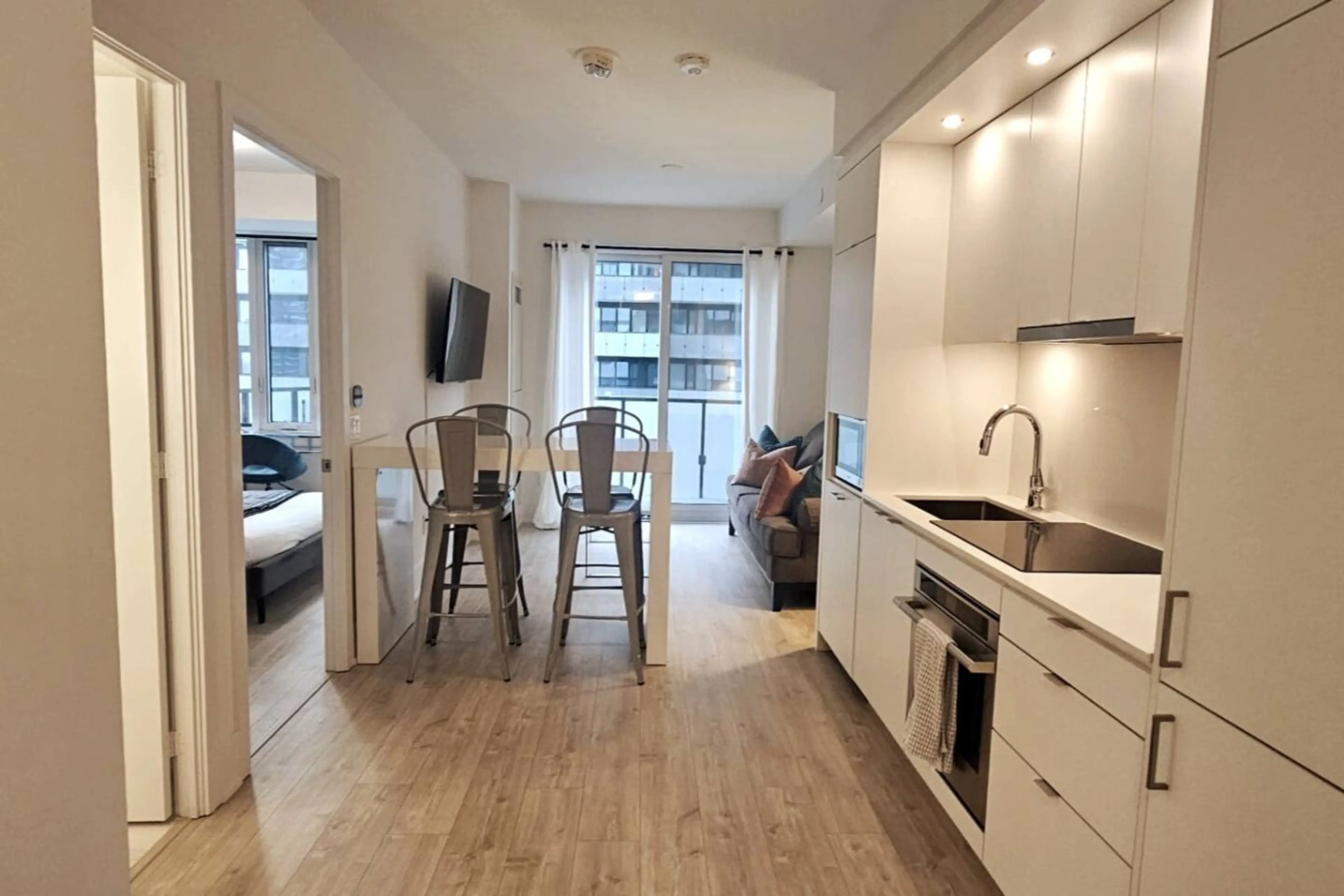New condo at The Well - a highly sought-after location in Downtown Toronto! European-influenced urban space with luxury retail, food hall, markets, restaurants, and entertainment venues. This fully furnished suite includes a fully equipped kitchen, in-suite laundry, queen bed + queen sofa bed, in-su...